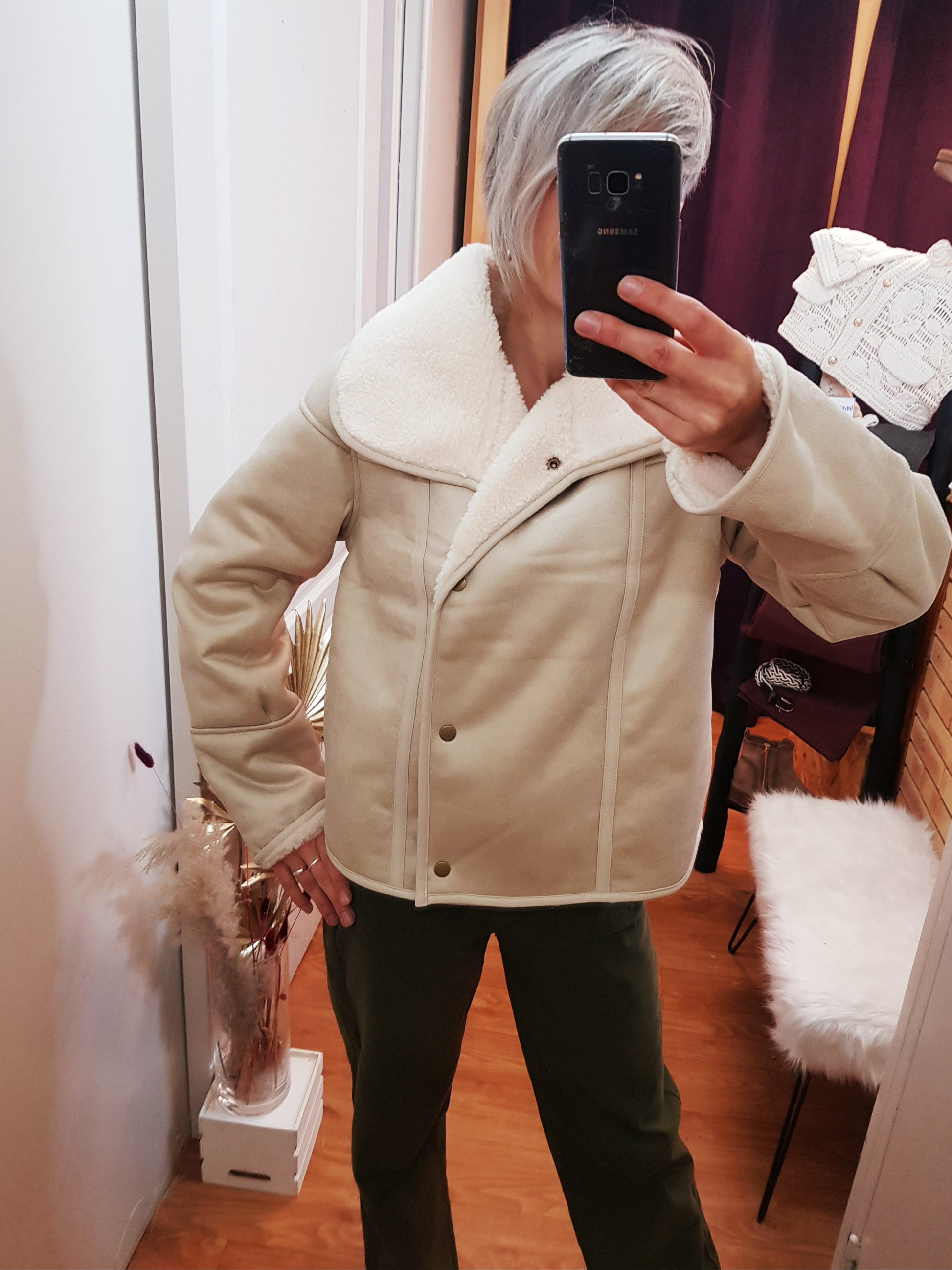 Intérieure : Texture sherpa effet laine bouclée, doublure ton sur ton.