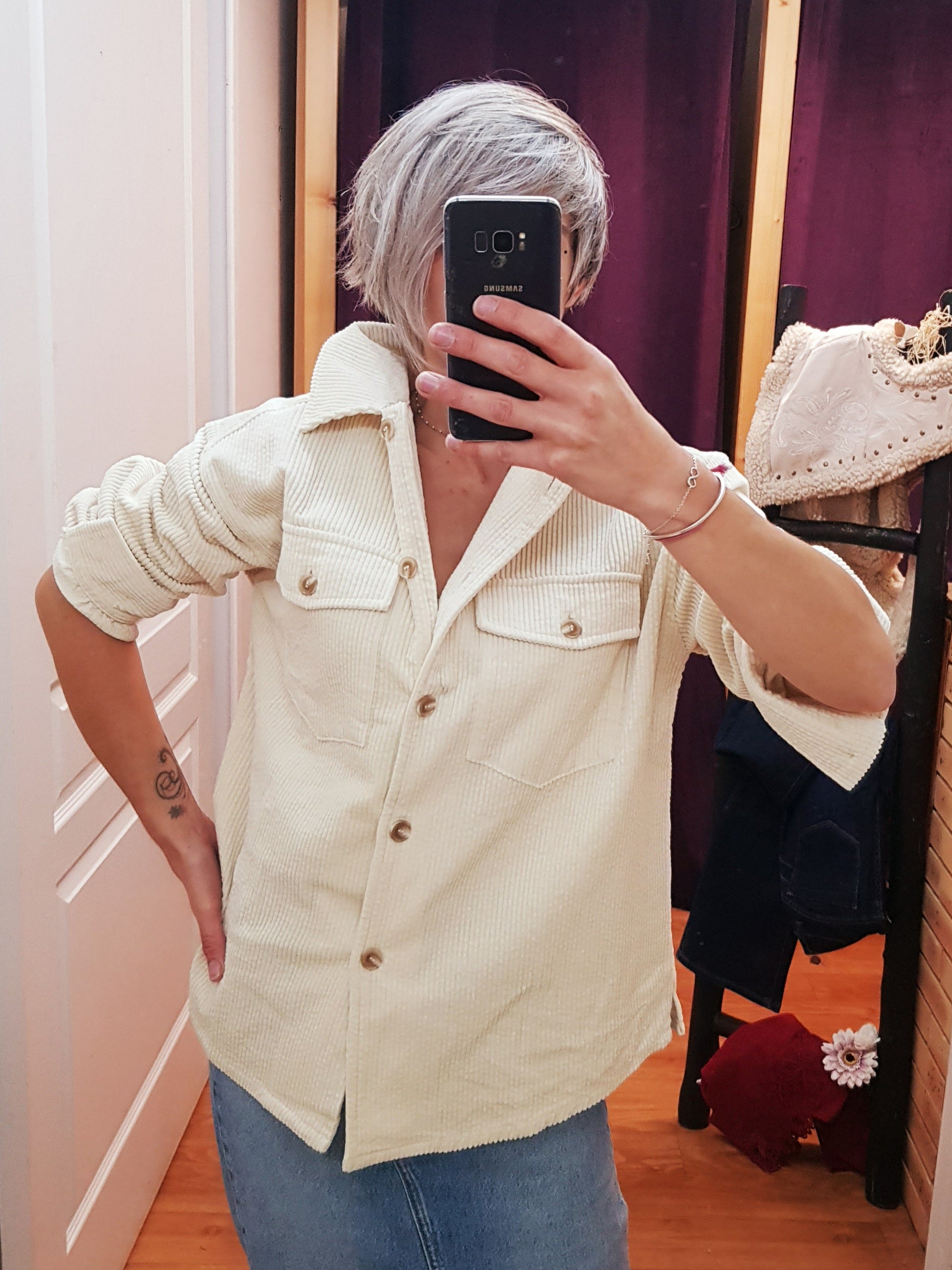 Alliant confort et style, la surchemise en velours Nildy se distingue par sa coupe oversize et son toucher doux. Sa matière côtelée lui donne un relief subtil et une allure décontractée chic, idéale à porter seule ou en superposition. Les poches plaquées et les boutons contrastés apportent une touche de caractère, faisant de cette pièce un essentiel tendance de la saison.